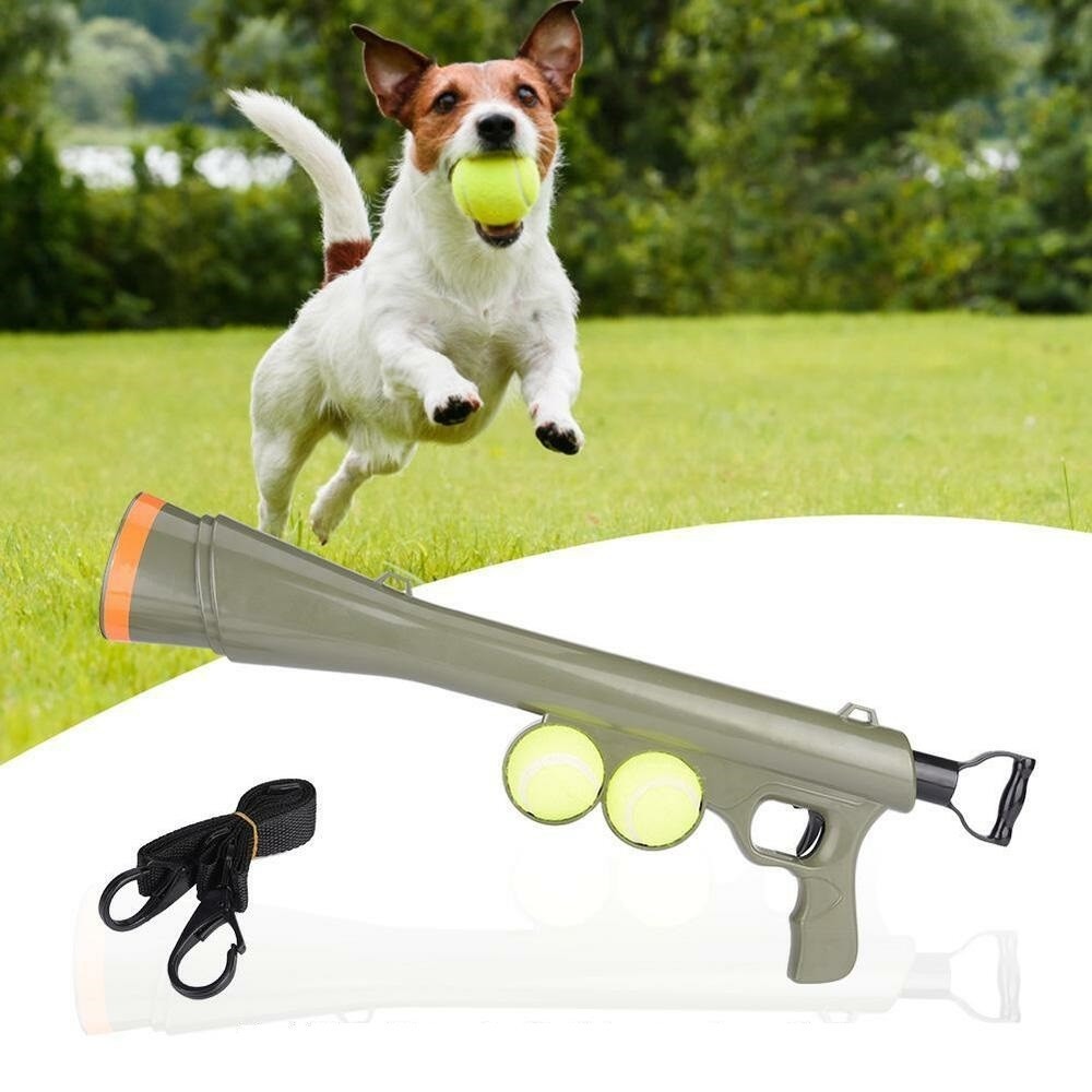 An Interactive dog toy that launches tennis balls for dogs’ favorite game – TOSS & FETCH!
